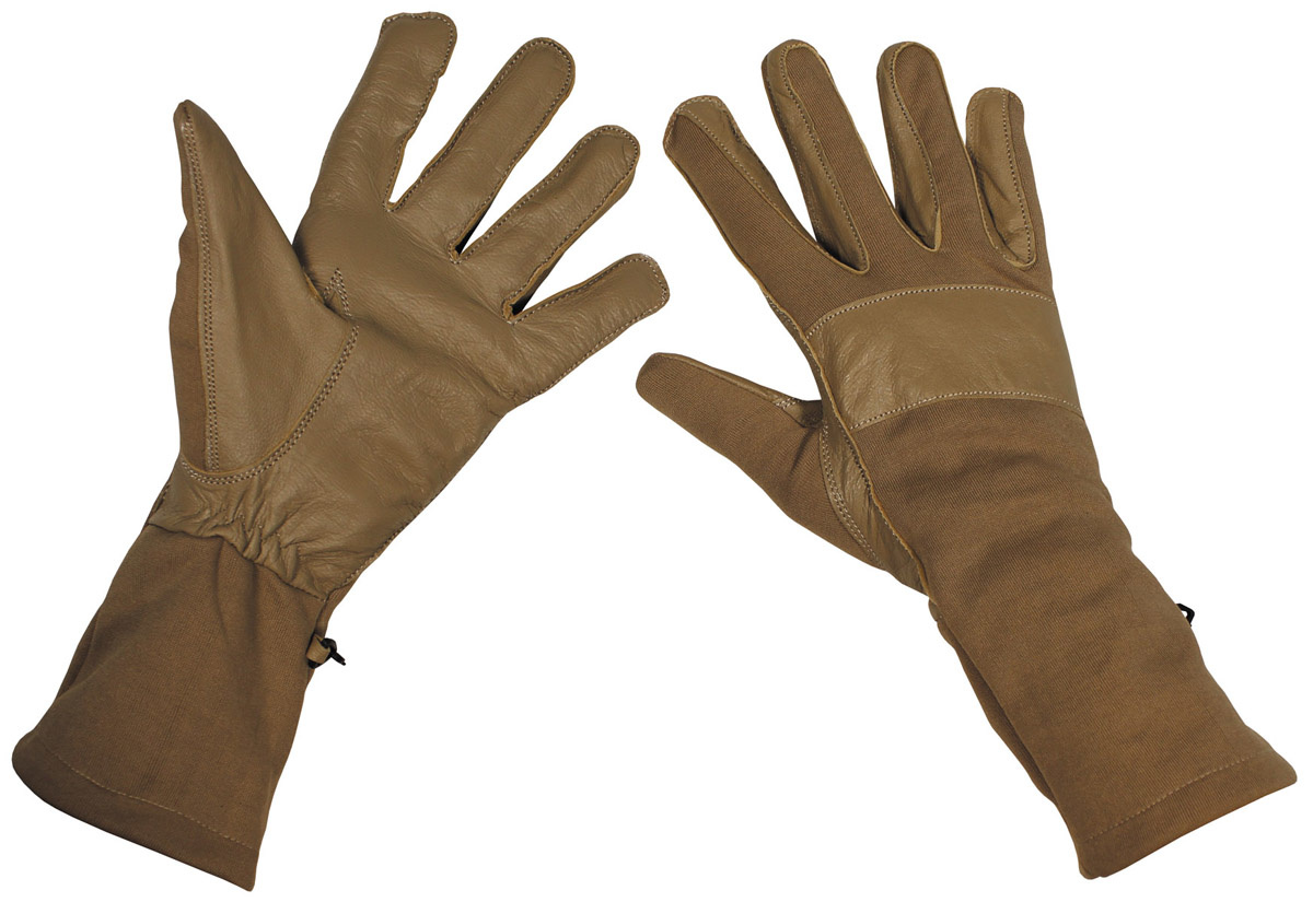 MFH - BW Kampfhandschuhe - coyote - lange Stulpe - Lederbesatz
