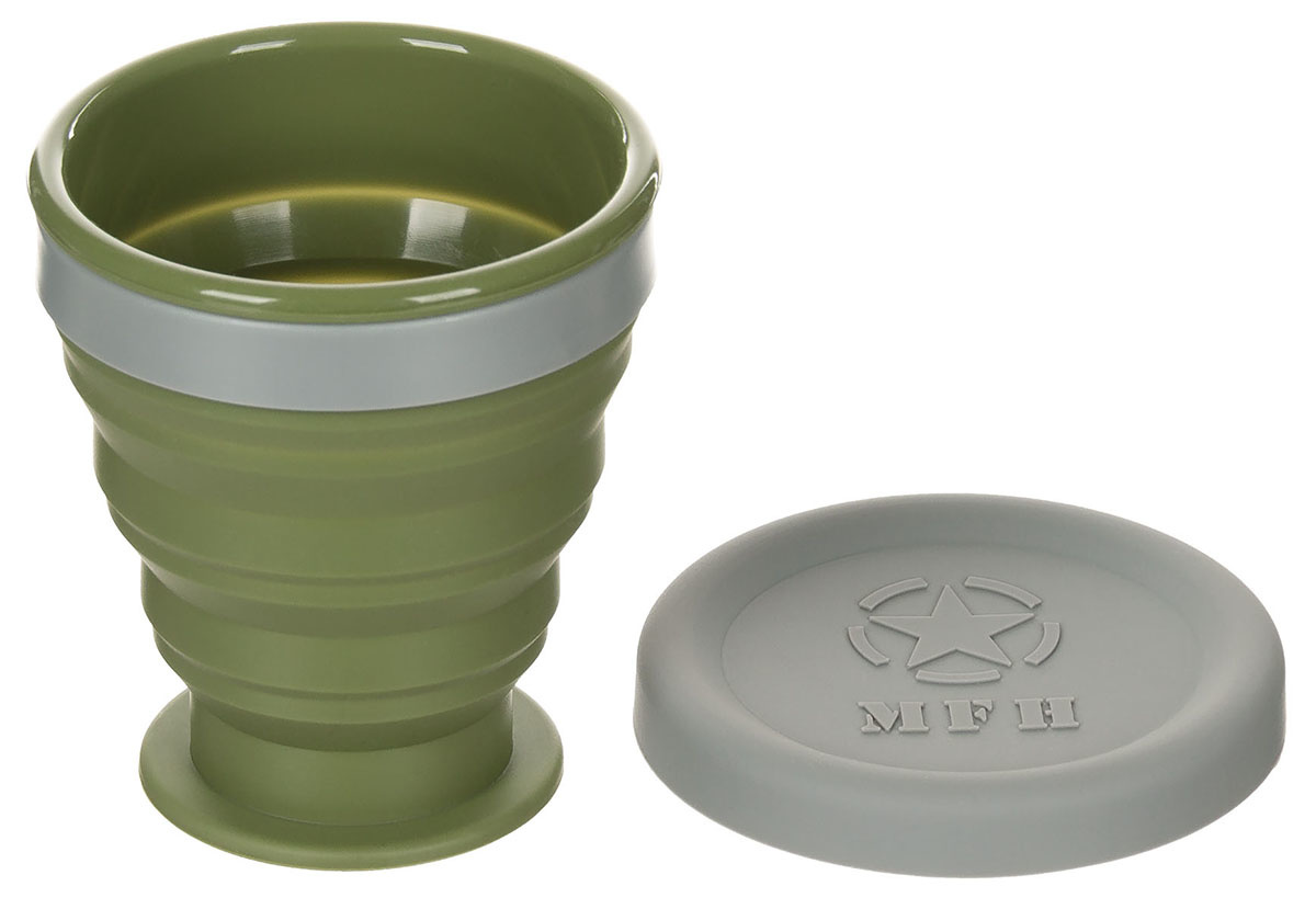 MFH - Faltbecher - mit Deckel - Silikon - oliv - 200 ml